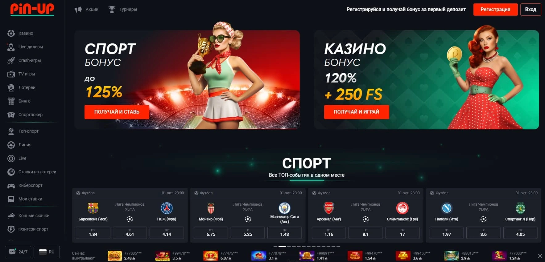Если вы ищете в поисковой строке “Pin Up букмекерская контора”, то вы всегда найдете на этой платформе десятки дисциплин: футбол, теннис, баскетбол, хоккей, волейбол, бокс, UFC, автоспорт и киберспорт. Варианты ставок охватывают ординары, экспрессы, live-форматы и долгосрочные исходы. Раздел Pin Up ставки не перегружен лишним — всё работает чётко и стабильно даже при высокой нагрузке.