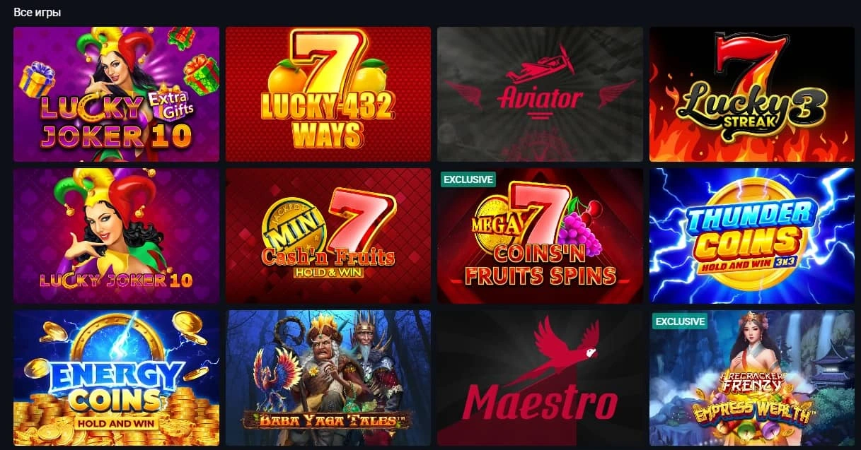 - библиотека игр не перегружена, но охватывает всё ключевое: слоты, рулетка, карты;
